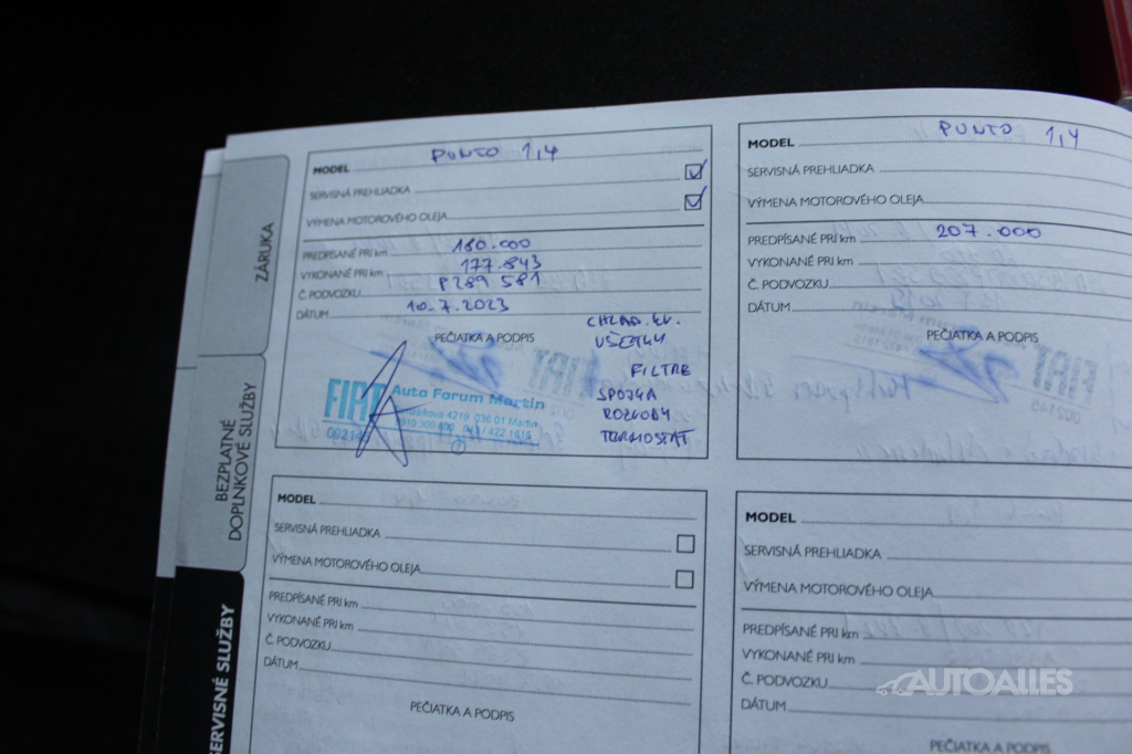 Vozidlo ako nové kupované na Slovensku. Skelet vozidla je nehavarovaný. Ku vozidlu je vystavený výpis zo štátneho Registra prevádzkových záznamov vozidiel - ODO-PASS, ktorý zobrazuje históriu najazdených kilometrov vozidla. Originálne najazdené kilometre si môžete overiť aj u ktoréhokoľvek oficiálneho predajcu Fiat. Vozidlo pravidelne servisované a udržiavané, k dispozícií servisná kniha. Pri 177 843 km menené spojka + rozvody. Vozidlo technicky aj opticky vo veľmi zachovalom stave, karoséria bez škrabancov a preliačenín, žiadna viditeľná korózia. Interiér čistý a udržiavaný, po nefajčiarovi. Motor má tichý a pravidelný chod, od výroby namontované LPG. Podvozok a nápravy v poriadku, prevodovka radí hladko. Obuté zimné pneumatiky na plechových diskoch 185/65 R15, v cene vozidla aj letné obutie na plechových diskoch 185/65 R15. Ku vozidlu je 2 x kľúč. AUTOALLES: najväčší slovenský autobazár, už od roku 1990, doživotná záruka na pôvod vozidla s garanciou vrátenia peňazí. Tešíme sa na vašu návštevu.